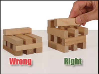 Players may support the tower with one hand while removing a tile with the other. Each new story must be completed with all three tiles.